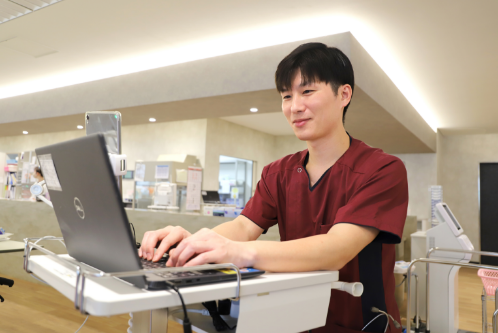 また、当院で働き始めて驚いたことは、委員会活動が盛んであり情報共有が非常に速いことです。決定事項が即時に共有されるため、仕事内容の改善がより早く行われていると思います。また、協力する雰囲気があり足並みが揃う時間が早いと感じています。