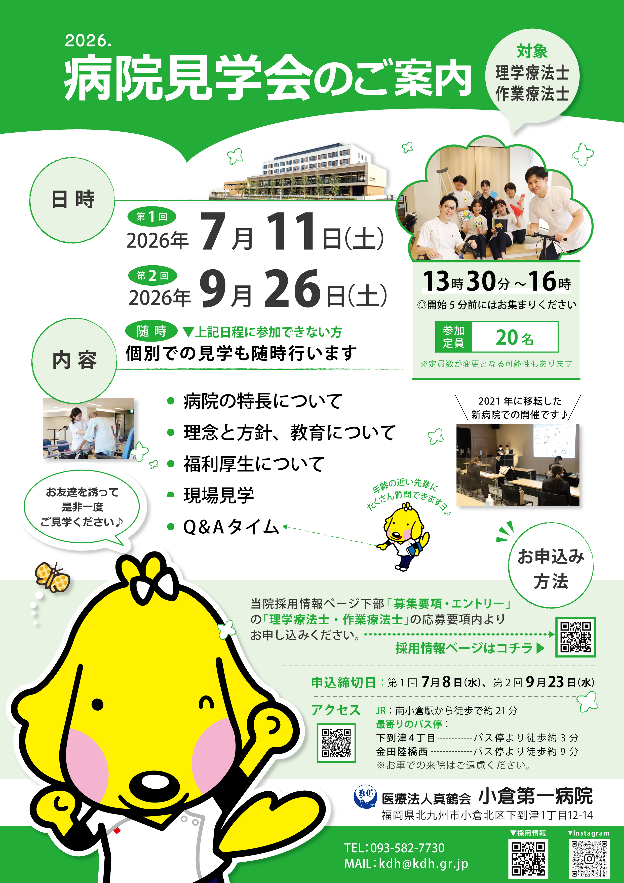 | 日程 | 【病院見学会(各回:定員20名)】